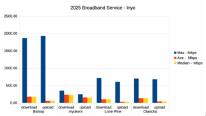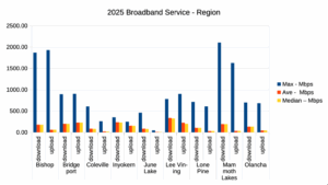The charts below show general speed test results (Maximum Download, Average Download and Median Download) for the communities in the Mono and Inyo Counties.